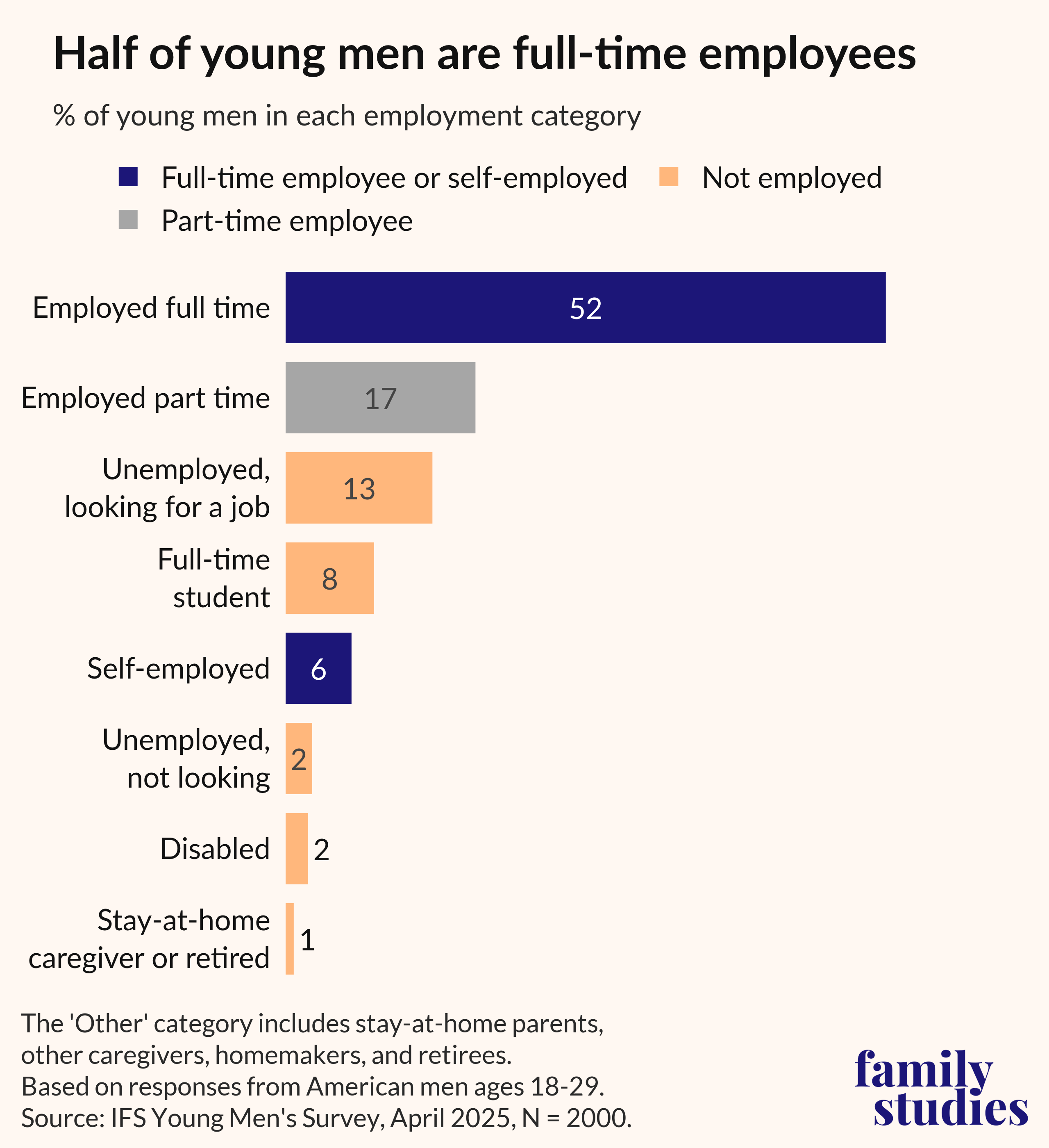 At the same time, most young men actually do have full time jobs.