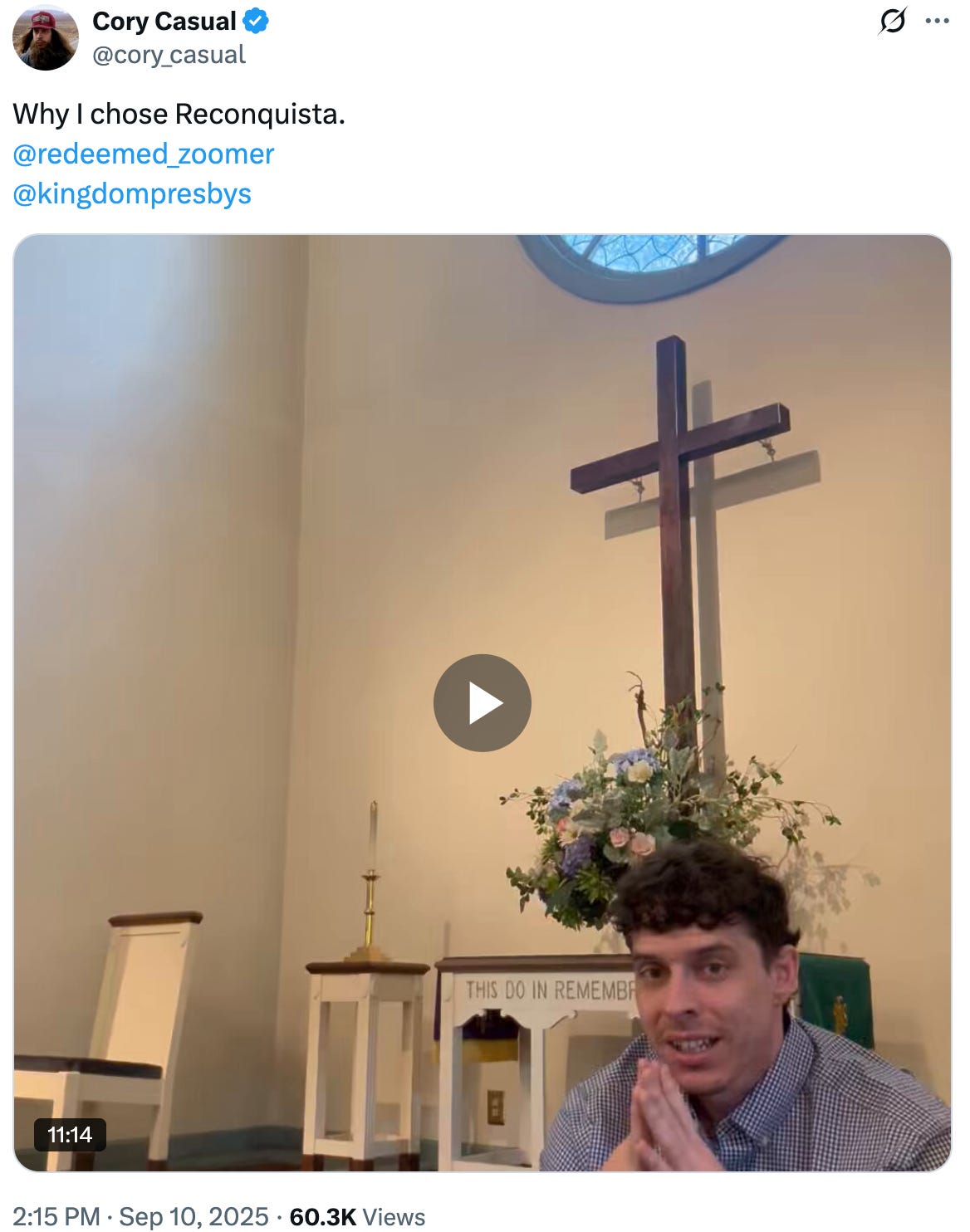A lot of people don’t like that. A lot of people were critical of Cory Cook’s decision. Redeemed Zoomer’s Operation Reconquista also seems to draw almost entirely criticism from evangelicals.