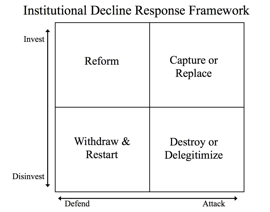 This leads to four models for responding to institutional decline.
