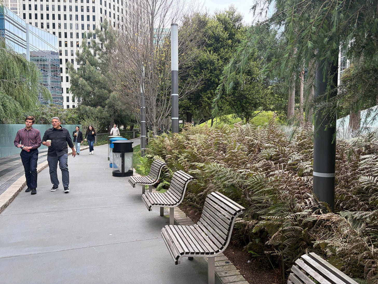 The feeling south of Market Street around the Salesforce Tower is quite different. There’s a new cluster of modern high rises around the new Transbay Terminal bus station. I believe these buildings are mostly occupied by tech and tech adjacent firms like professional services.